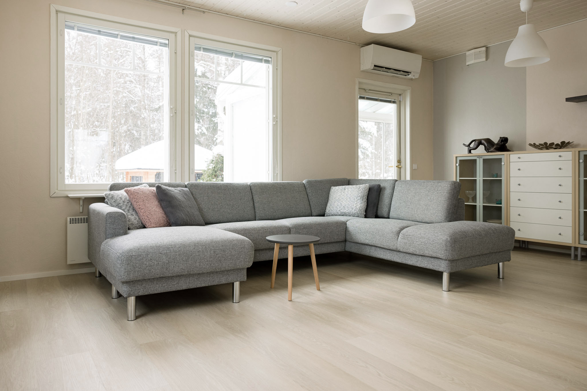 Puuteri – Helle Eiche ist ein stilvoller Vinylboden in Eichenparkettoptik. Der helle Farbton wirkt warm, ohne einen Rotstich aufzuweisen und kombiniert sich leicht mit verschiedenster Einrichtung.
